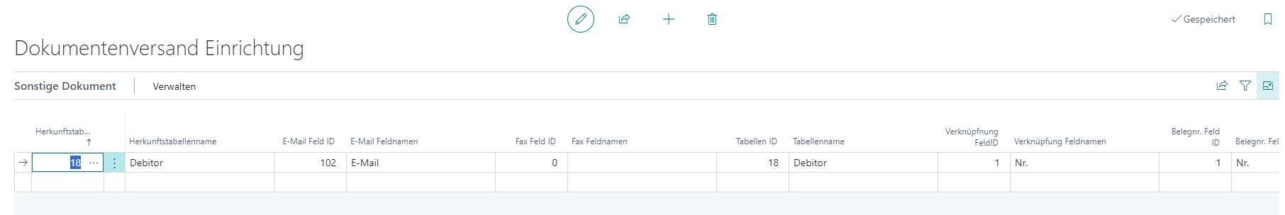 - Belegnr. Feld ID: Hier kann ein Feld hinterlegt werden, welches als „Belegnr.“ in der Dokumentenversandaufgabe herangezogen werden soll.