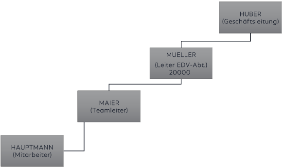 Abteilungsleiter MUELLER benötigt unter bestimmten Umständen (Überschreitung von Freigabegrenzen) der Geschäftsleitung.