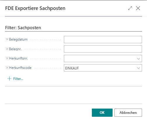 Hier können dann die Filter für dem jeweiligen Export gesetzt werden z.B. nach Datum, Belegnummer, Herkunftscode (EINKAUF),…..