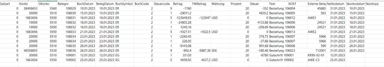| BuchCode | 2 = Habenbuchung, Eingangsrechnung = Buchcode = 2 und Betrag negativ, Eingangsgutschrift = Buchcode = 2 und Betrag positiv |