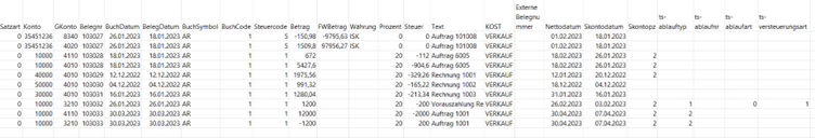| BuchCode | 1 = Sollbuchung, Ausgangsrechnung = Buchcode = 1 und Betrag positiv, Ausgangsgutschrift = Buchcode = 1 und Betrag negativ |