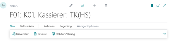 - Debitor Zahlung: Hat ein Kunde eine offene Rechnung, die er mit einer Barzahlung begleichen möchte, kann hier der entsprechende Beleg ausgewählt und ausgeglichen werden