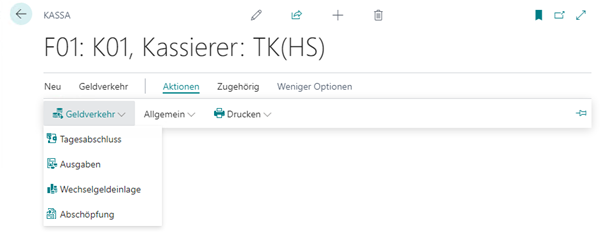 Über die Schaltfläche "Geldverkehr" erscheinen folgende Funktionen: