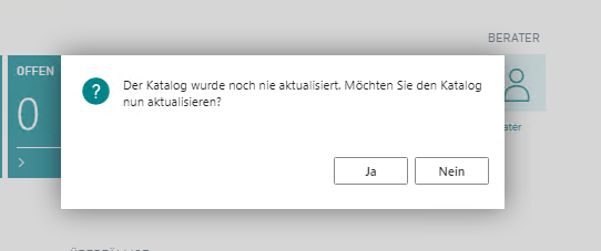 Es erscheint folgendes Feld. Bitte bestätigen Sie die Aktualisierung des Katalogs/Store mit JA.