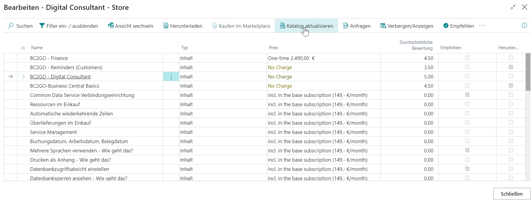 Jede weitere Aktualisierung des Katalogs im Store erfolgt über die Funktion Katalog aktualisieren.