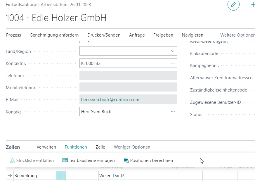 Falls dieses Häkchen nicht gesetzt ist, kann man die Positionsnummer auch über eine Funktion in den Zeilen einfügen lassen: Funktionen => Positionen berechnen.