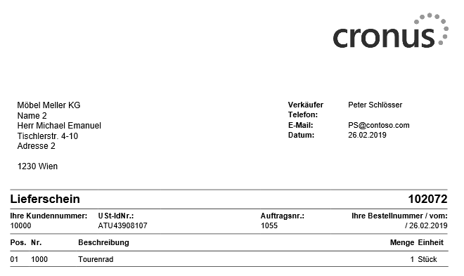 Die Positionsnummer wird in den Lieferschein und Rechnung mitübertragen, d. h. auch bei teilgelieferten / teilfakturierten Aufträgen wird die Positionsnummer aus dem Auftrag verwendet und im "Sammelrechnungslauf" bzw. über die Funktion "Lieferzeilen holen" in die Rechnung übertragen.