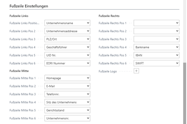 Im Register „Fußzeile Einstellungen" werden die Felder bzw. das Logo parametrisiert: