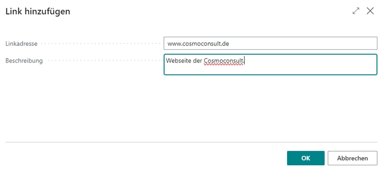 3. Geben Sie eine Linkadresse und ein Beschreibung ein
