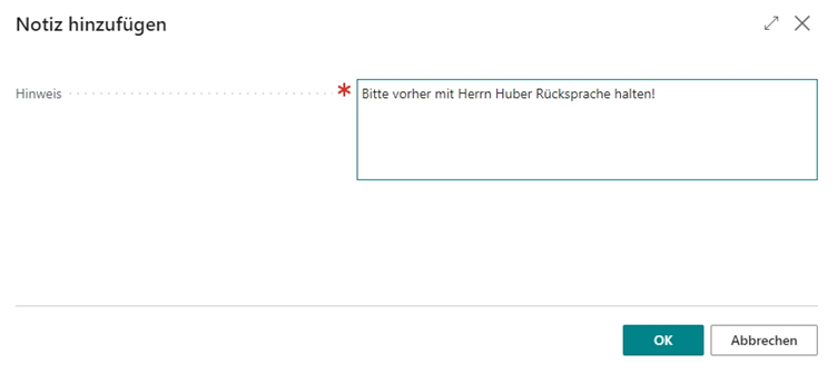 3. Geben Sie eine Notiz im Feld Hinweis ein