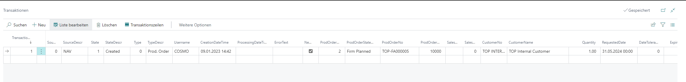 Die Übergabe von Fertigungsaufträgen von Microsoft Dynamics 365 Business Central an das externe PPS erfolgt i.d.R. manuell, d.h. der Anwender entscheidet, welche Fertigungsaufträge im externen PPS geplant werden sollen und überträgt diese per Knopfdruck. Ebenso muss nach manuellen Änderungen an einem Fertigungsauftrag dieser erneut übertragen werden, sofern diese Änderungen für die Planung relevant sind.
