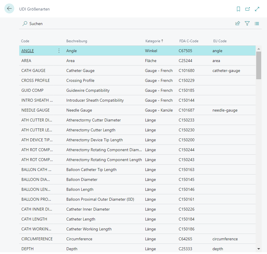 UDI Größenarten sind eine Unterkategorie der klinischen Größenkategorien und werden zur Klassifizierung klinischer Größen und Attribute verwendet. Jeder Größenart ist ein entsprechender Schnittstellencode zur FDA GUDID-Datenbank und zur EU EUDAMED-Datenbank zugeordnet.