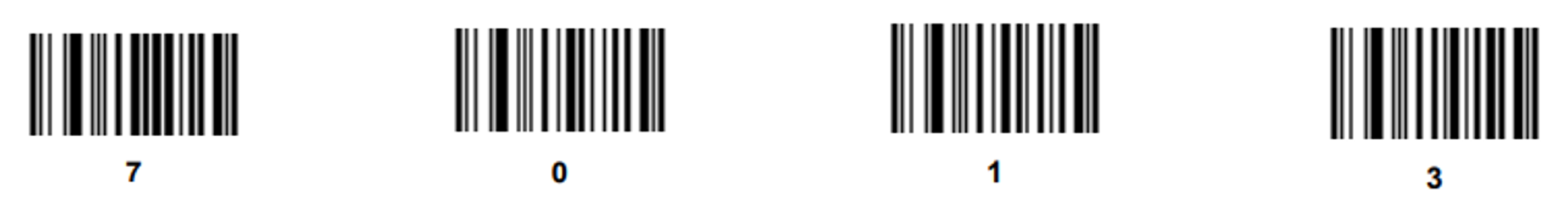 Scan the barcodes for 7, 0, 1, and 3 sequentially.