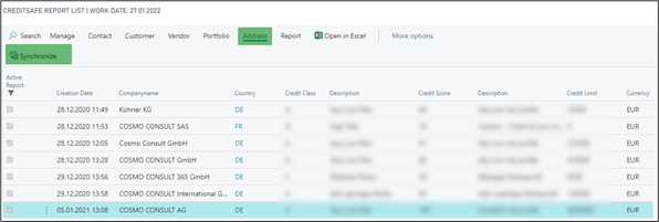 | (Address) Synchronize | Compare data of Creditsafe report with data of contact, customer, or vendor. |