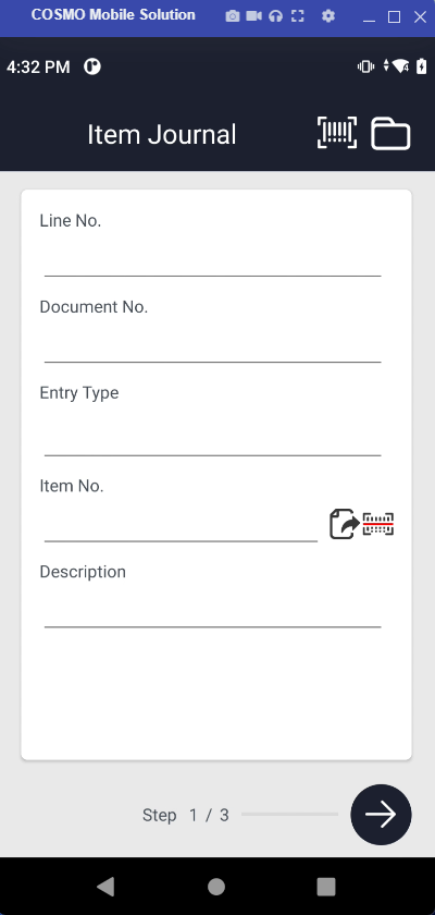 | Page Type | Specifies the type of the page (see Page Type Examples). The options are: - List: Displays the records in a list view. NOTE: If this page type is in use, the Card View FastTab is not visible on the Global Page Customization page. - Card: Displays the records in a card view. NOTE: If this page type is in use, the List View FastTab is not visible on the Global Page Customization page. - List and Card: Displays the records in a list view, but it is possible to choose a specific record and open it in a card view. - Headerline: Displays the header and line pages together as a document view in the mobile application. NOTE: This type should be set for the header page. The line page should be added as a "Drill-down" type relation with the required Relation Filters via a specific dummy field. The "Lines" property of this dummy field should be set to "true". For more information, see Create Line Link to Header with Drill Down Relations. - Journal: Opens the required page in a card view. However, all records that are on the current template and batch can be opened with a Folder icon in the upper-right corner of the journal page. Usually used with Multiple Sided View. - Query: Used for query type objects. This type is special because it also has filter and result fields. Filter (or filter with barcode) fields are used for providing filter values based on results that can be calculated. Results fields are regular fields on the Query pages. Query-type pages cannot be extended and have additional limitations compared to other page types, such as the inability to associate functions, support conditional views, apply filters on the result page, or sort the results. Please note that the base configuration package does not contain any Query-type objects anymore. |