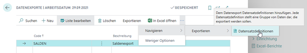 Im Datenexport können Exporte in Fremdsysteme definiert werden (Trennzeichen Semikolon).
