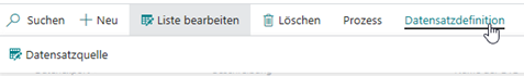 Über die Schaltfläche „Datensatzdefinitionen" werden generelle Parameter bzw. die Exportfunktion hinterlegt.