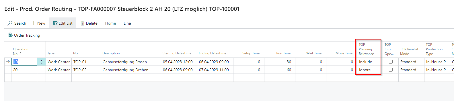 - In the routing, there is no operation with the TOP Planning Relevance Include.