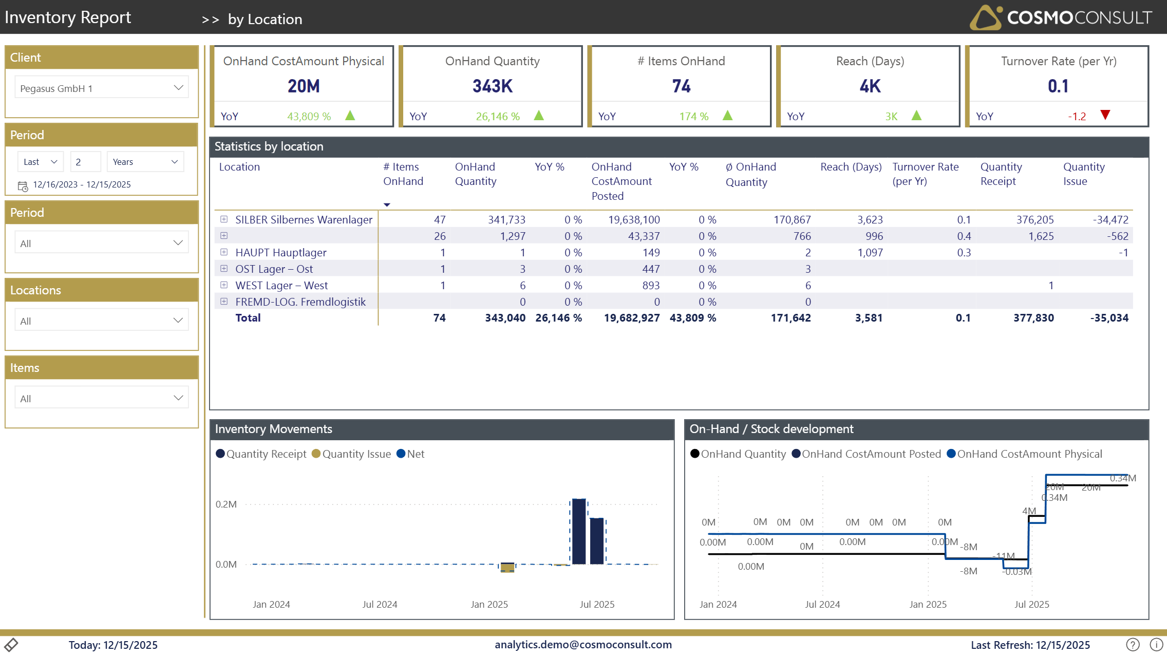 - OnHand Quantity: Current stock levels at each location