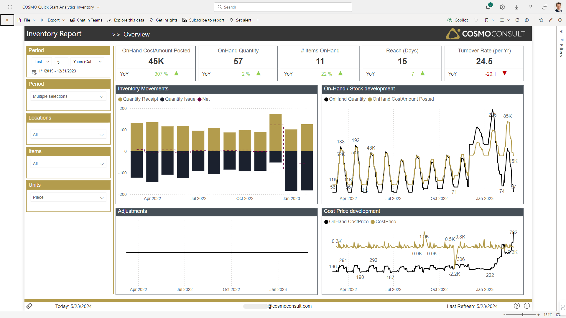 COSMO Quick Start Analytics Standard Report pages are usually divided into five sections: