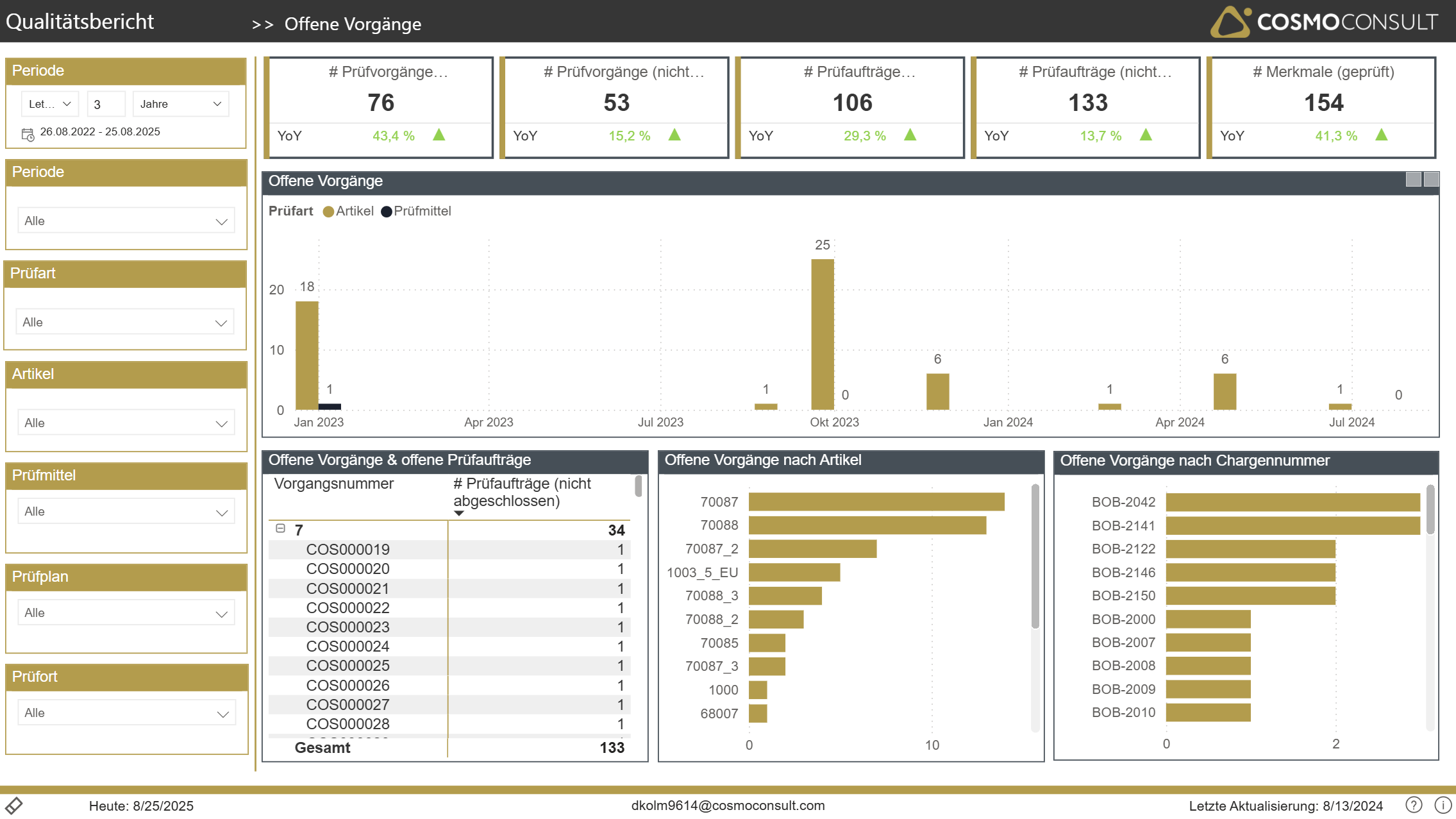 - open processes by item and LotNo for statistic- and selection purposes