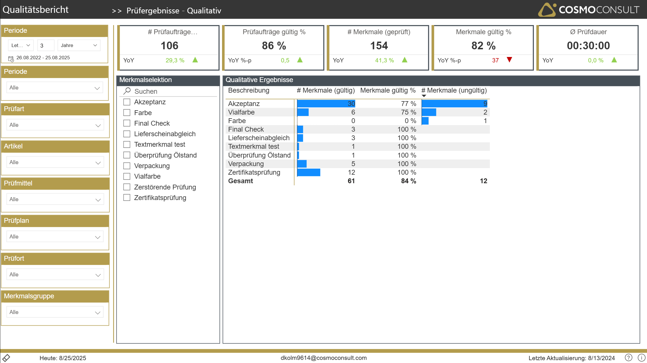 Qualitative Results Use this report to analyze success-rates of qualitative results (e.g. by item). Use the tool-tip to identify invalid test-orders including reason for invalidation.