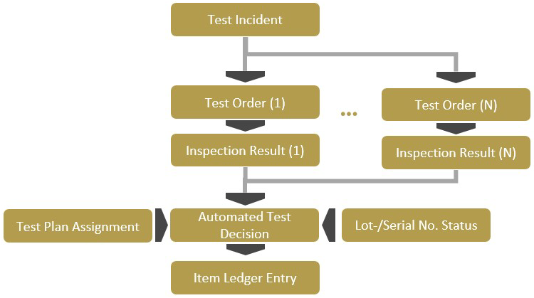 Automated test decisions allow you to automate the change of Lot/Serial No. Status based on an inspection result. When a Test Incident status changes from Ongoing to Archived, the inspection results of the test orders are checked. Based on the inspection results, the Lot/Serial No. Status is automatically adjusted for the complete quantity.