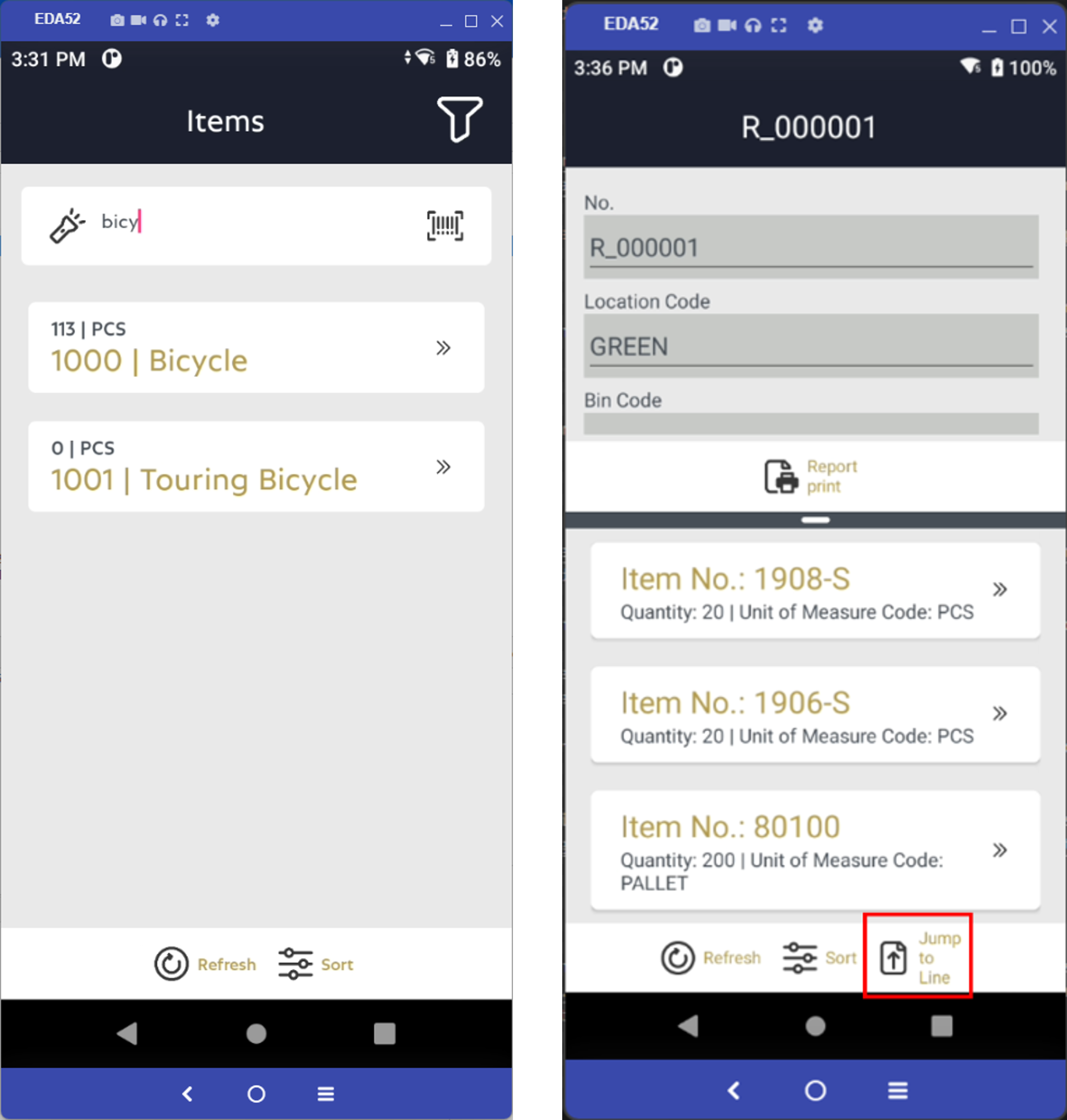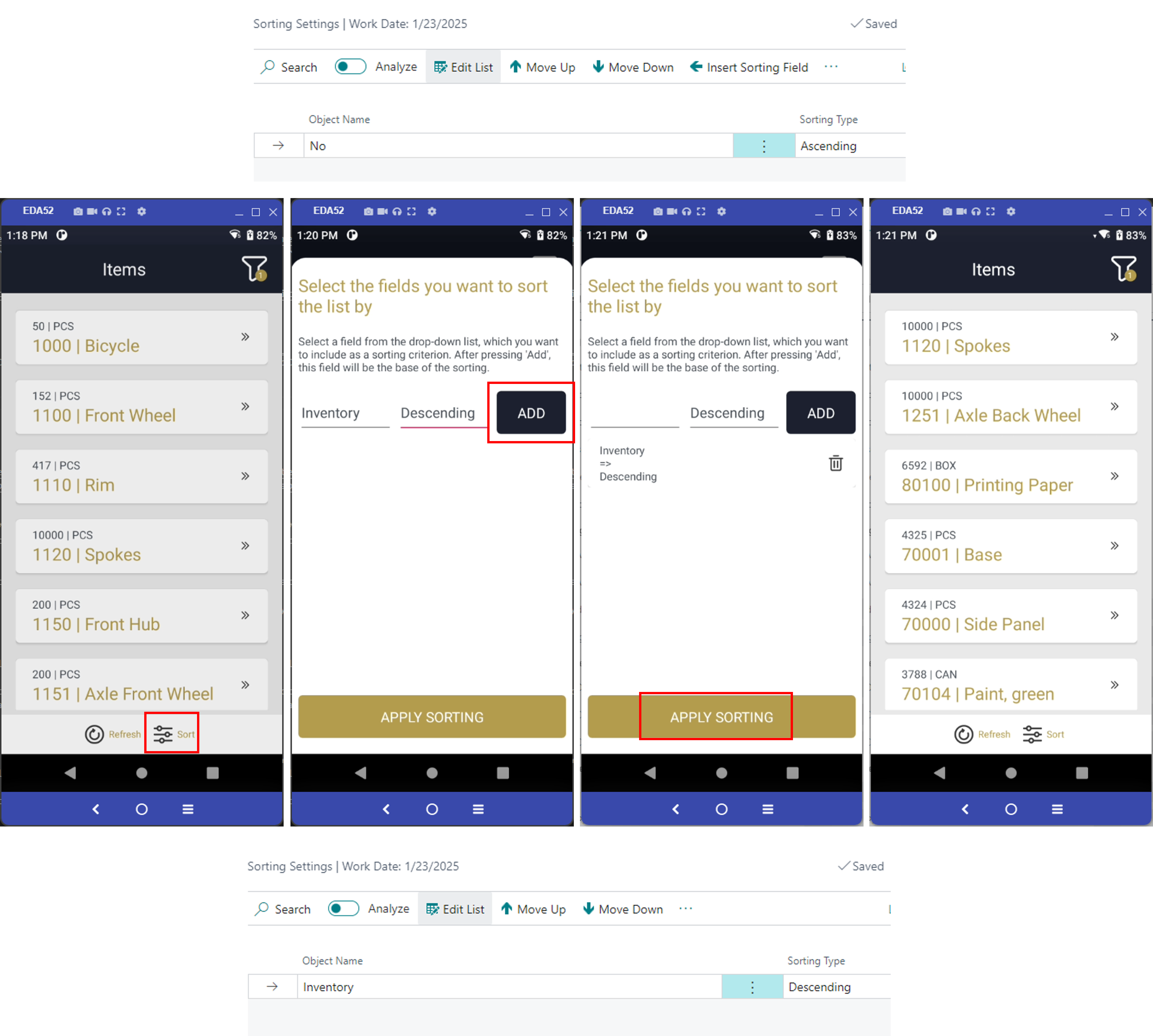 In the Global Page Customization, the list is predefined to be sorted in ascending order based on Item No.. When the list is opened in the mobile application, the records appear accordingly.