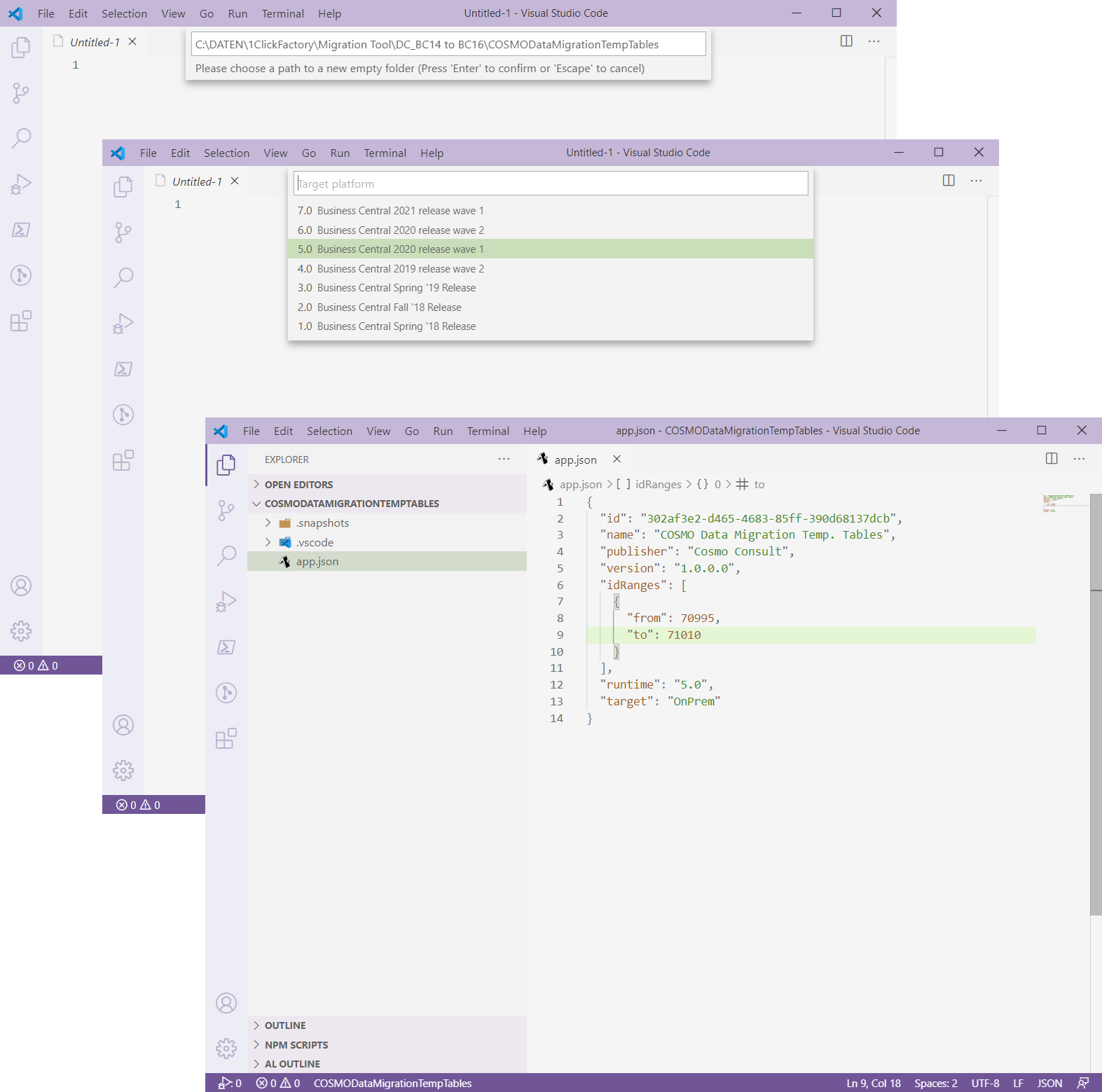 Run the build task (Control + Shift + B) to create the final Data Migration Temp. Tables app for the COSMO Document Configurator app and store the .app file in the $AppFolderPath directory.