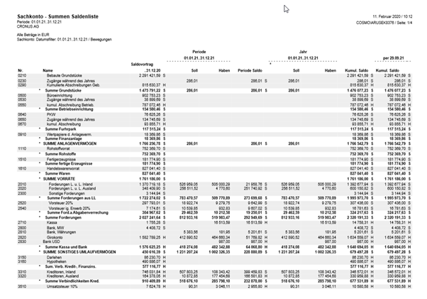 Sachkonto – Summen Saldenliste (Report 1070071)