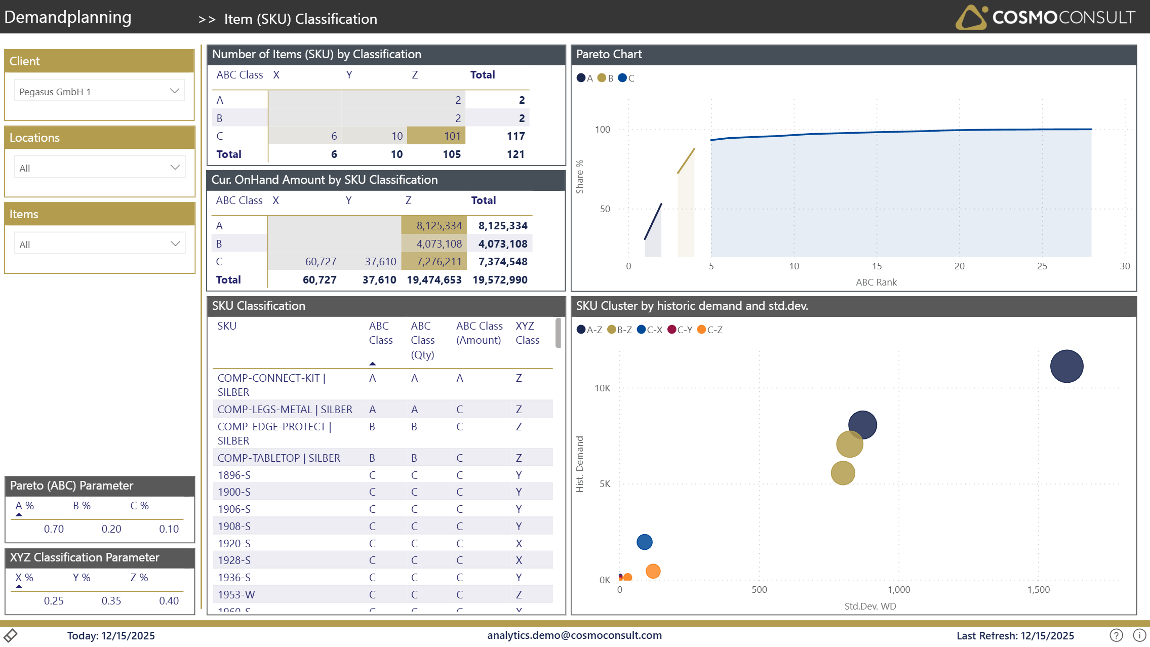 Gain insights into the distribution of items by value and demand stability to derive inventory strategies.