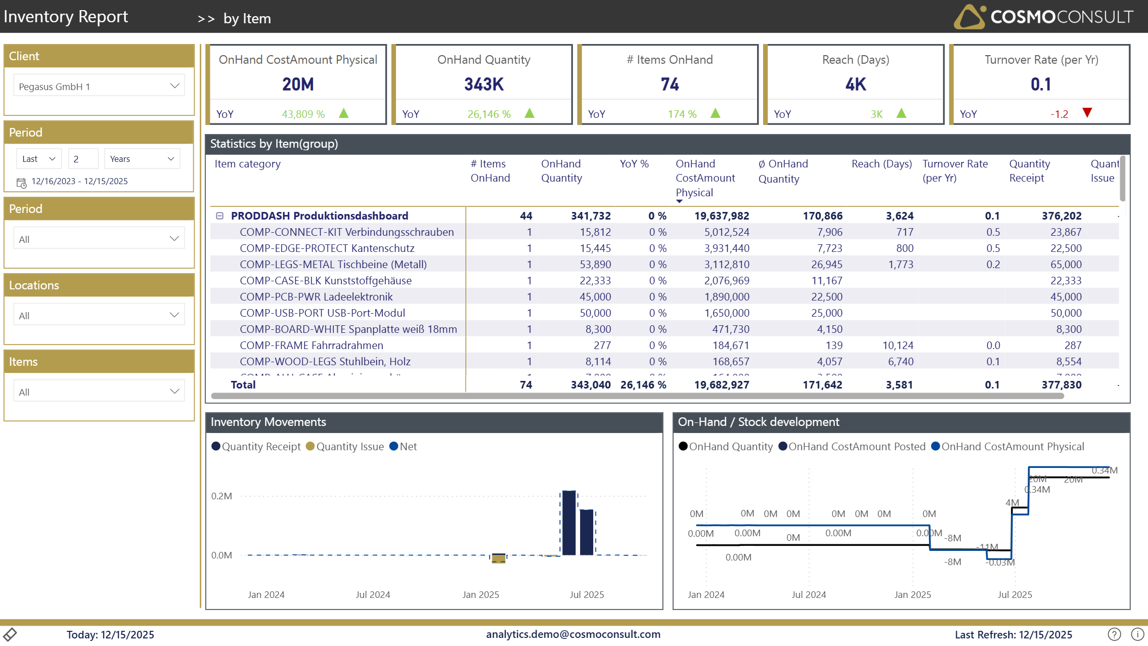 The By Item page provides an item-centric view of inventory management, enabling detailed analysis of stock levels, movements, and performance for each product in your portfolio.