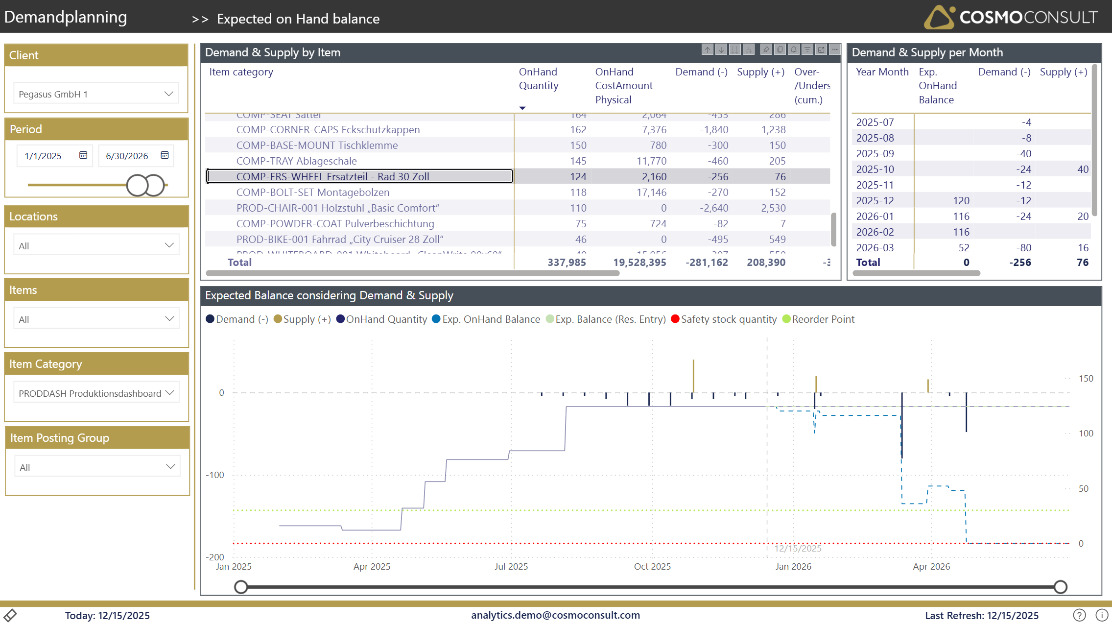 - Exp. OnHand Balance (orange): The projected balance considering OnHand Quantity (stock level on loading date) together with cumulated (future) demands & supplies.
