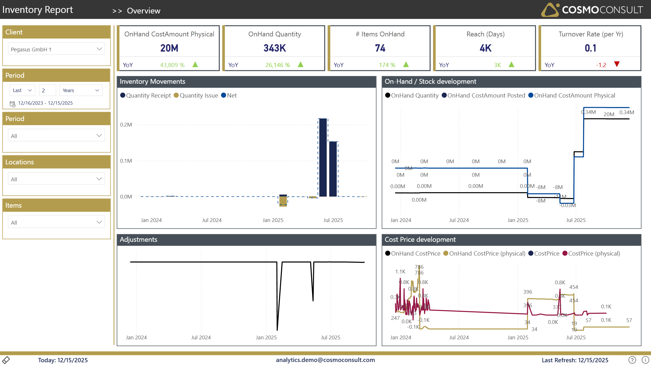 Offers an item-centric view with detailed analysis of stock levels, movements, and performance for each product in your portfolio, supporting product portfolio management and item performance optimization.