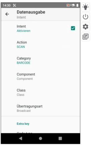 • Extra Barcode String: com.keyence.autoid.scanmanagersdk.data