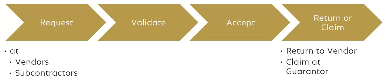 If we act as a guarantee holder, we usually request the guarantees from our vendors or subcontractors. After validating that everything is correct regarding the contract between the parties, we accept the guarantee and if everything works well at the end of the period, we return it back to the vendor.