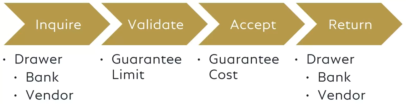 We inquire about guarantees at banks or vendors, for example, special insurance vendors offer guarantees. We usually have a guarantee limit of these guarantee drawers. If everything is fine with the offer, then we accept the guarantee and the cost will arise. At the end of the running period for the guarantee, we will return the guarantee back to the drawer (the bank or any vendor).