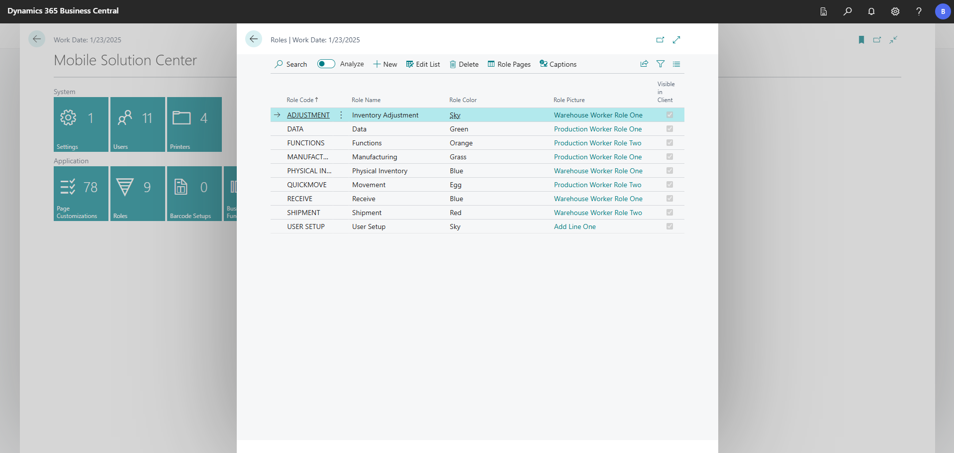 Roles represent a collection of functions that are systematically organized to fulfill specific tasks for a user. These roles encompass various page customizations. Page customizations displayed in the mobile application in a certain role have the Visible in Client toggle turned on in the Global Page Customization page.