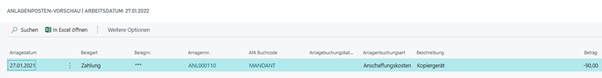 Der Anlagenposten wird mit folgendem Anlagendatum verbucht: