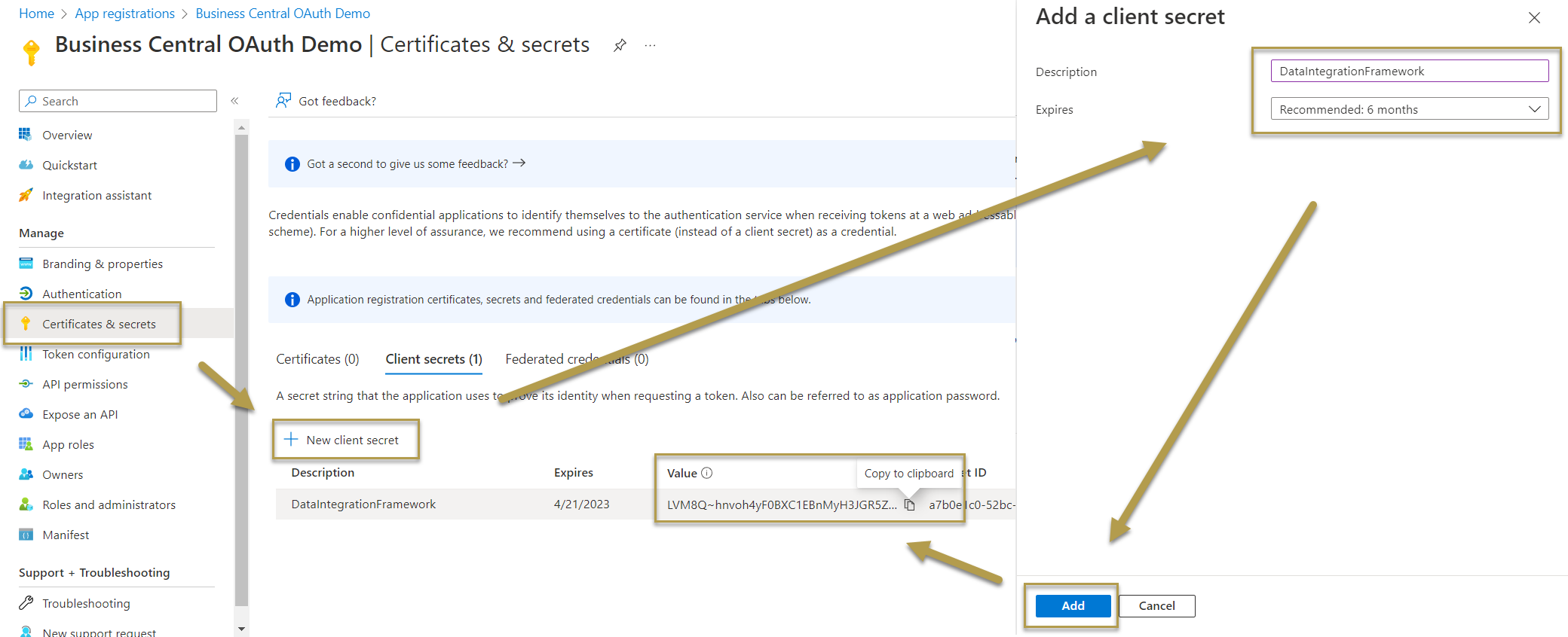 4. Find the client ID and Azure endpoints. Copy the values for the next steps. The endpoint version defines the used OAuth parameters, such as scope and resource. For Service to Service (S2S) authentication based on client credentials grant type, you will only need the OAuth 2.0 token endpoint (v2). For other grant types, you might also need the OAuth 2.0 authorization endpoint (v2).