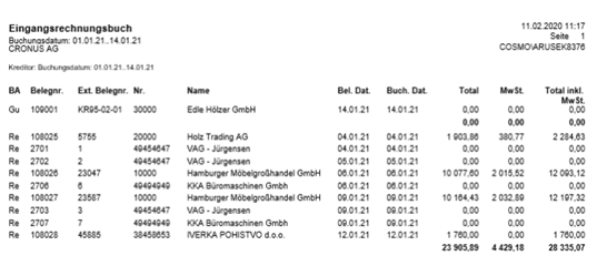 | Externe Belegnummer | Belegnummer des Lieferanten |